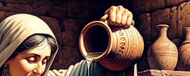 - Mary came with an alabaster flask of scented oil, worth 300 denarii (which is about one year’s wage) – In this we see the preciousness of what is inside the outer flask. Mary is traditionally thought to be very poor, and therefore this may very well be the only possession she held of value.